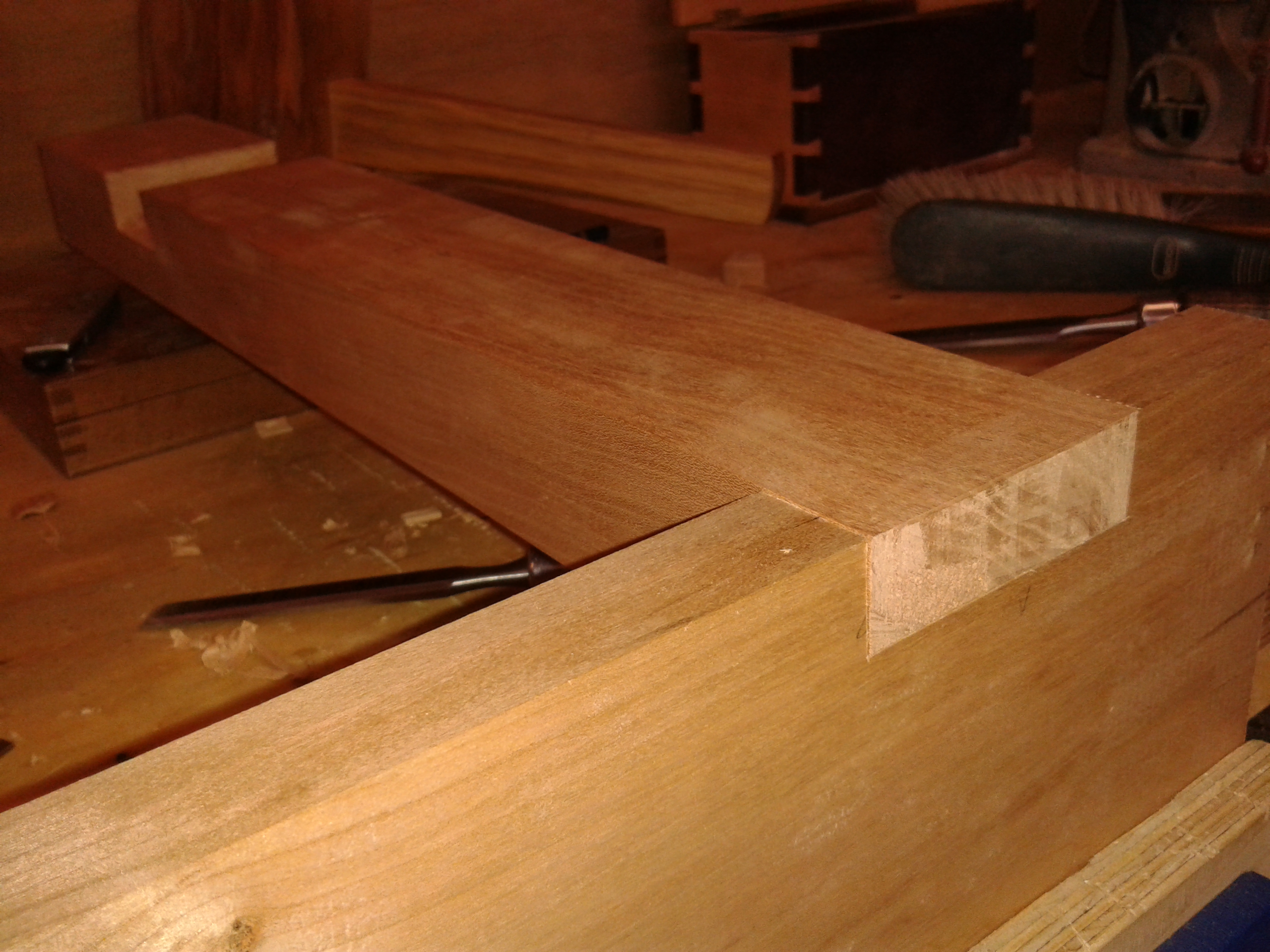 Being a novice, I don’t really know for sure how much of a problem this will be. I have decided to risk proceeding regardless. After all, all the joints are going to be pegged as well as glued, and even in the worst case scenario of the joint failing after glue up, I will at least have learned something.
